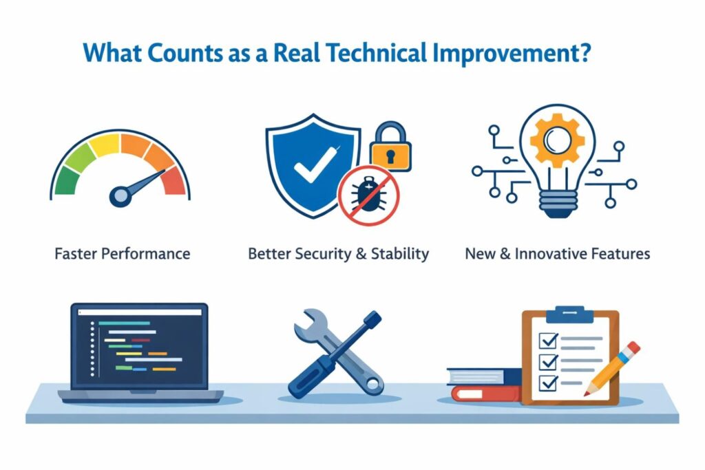 A real technical improvement is not just a business win, a cleaner workflow, or a nicer user screen. It is a concrete change to how a machine, model, network, device, or software process actually runs.
